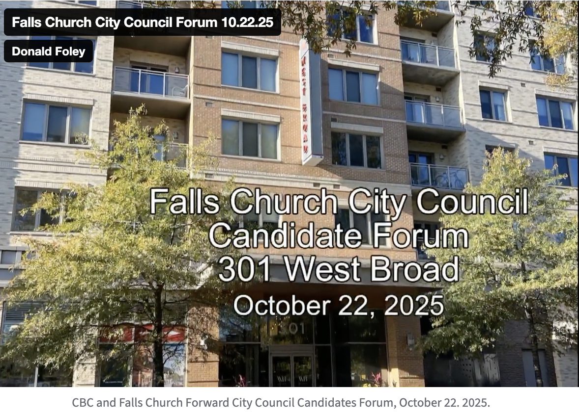 With citywide elections for the Falls Church City Council just days away – Tuesday, Nov. 4 – The Falls Church Independent offered interviews to the three non-incumbent candidates, Brian Pendleton, Arthur Agin, and James Thompson, Jr., running for the four open seats against incumbents, Laura Downs, David Snyder, and MaryBeth Connelly. We’d met each of the non-incumbent candidates at the recent Citizens for a Better City and Falls Church Forward Candidate Forum Oct. 22. As of today, only Pendleton has accepted our offer. So, we’ll share what we’ve learned.