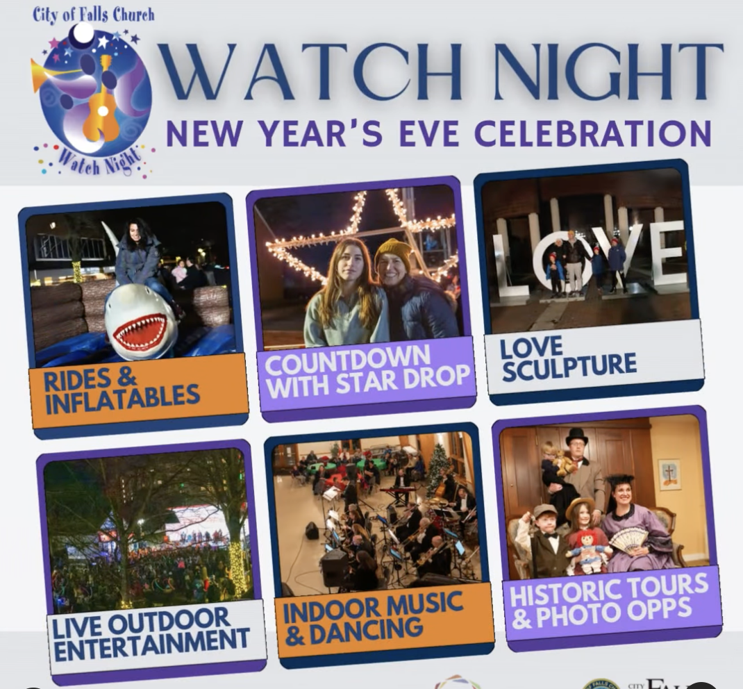 Celebrate New Year's Eve in the City of Falls Church at the 27th Annual Watch Night celebration presented by the CATCH Foundation and City of Falls Church. Fun and entertainment is in two locations, outdoors on the closed off block of Broad Street between Maple Avenue and N. Washington Street. Free, fun, and family friendly – including live music, inflatables and rides, karaoke and more! Indoor venues host live music, dancing, tours and are a great place to warm up!