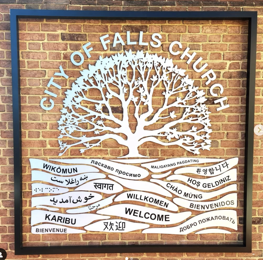 Posting on Instagram Dec. 11, the City announced: "Earlier this week, the new welcome sign at City Hall was officially unveiled and dedicated! The artistic sign commemorates the 75th Anniversary of the City of Falls Church and celebrates diversity and inclusion with 'welcome' across multiple languages representing the global community of the City of Falls Church."