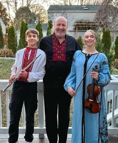 Volodymyr Sukhin and his charming children, Olexandra (violin) and Mykhailo (flute), will perform Christmas carols, classical music, and rock songs.