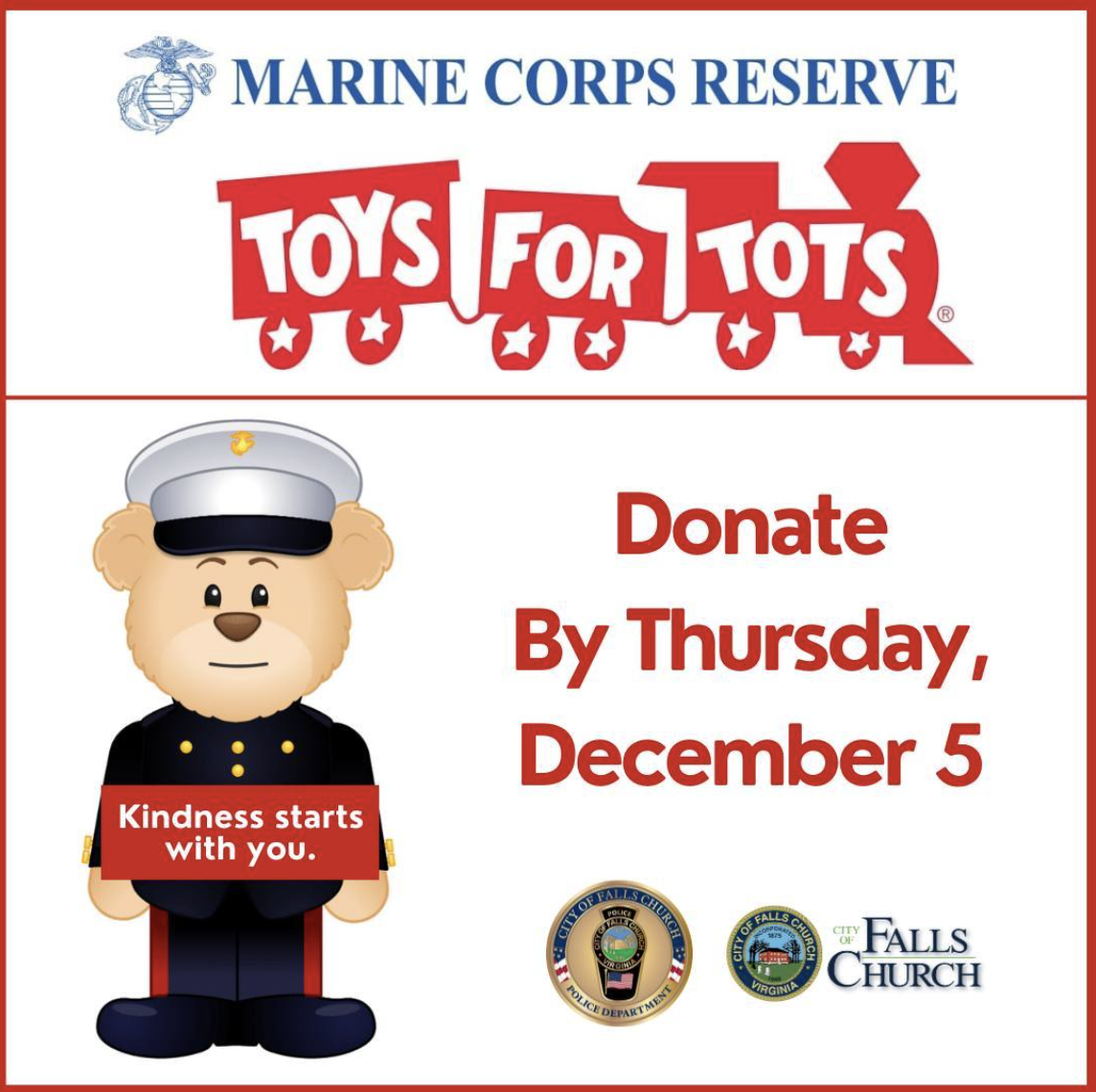 The City of Falls Church’s Police Department is collecting toys for the annual Marine Corps Reserve Toys for Tots Drive this holiday season.