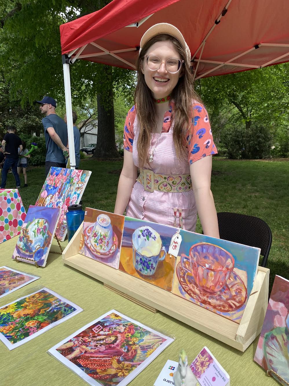 Colorful Still Life artist Emma Daisy Hill was also pleased with how the day was turning out. “I was worried about rain but it all came out of the forecast and it’s nice and sunny right now. And everyone’s walking around. And we’ve got live music next to us. And it’s very festive, which I’m happy about and it’s just so fun. I’ve seen some people I know and spoken to some arts people I didn’t know. So it’s really fun. It’s a great community event.”
