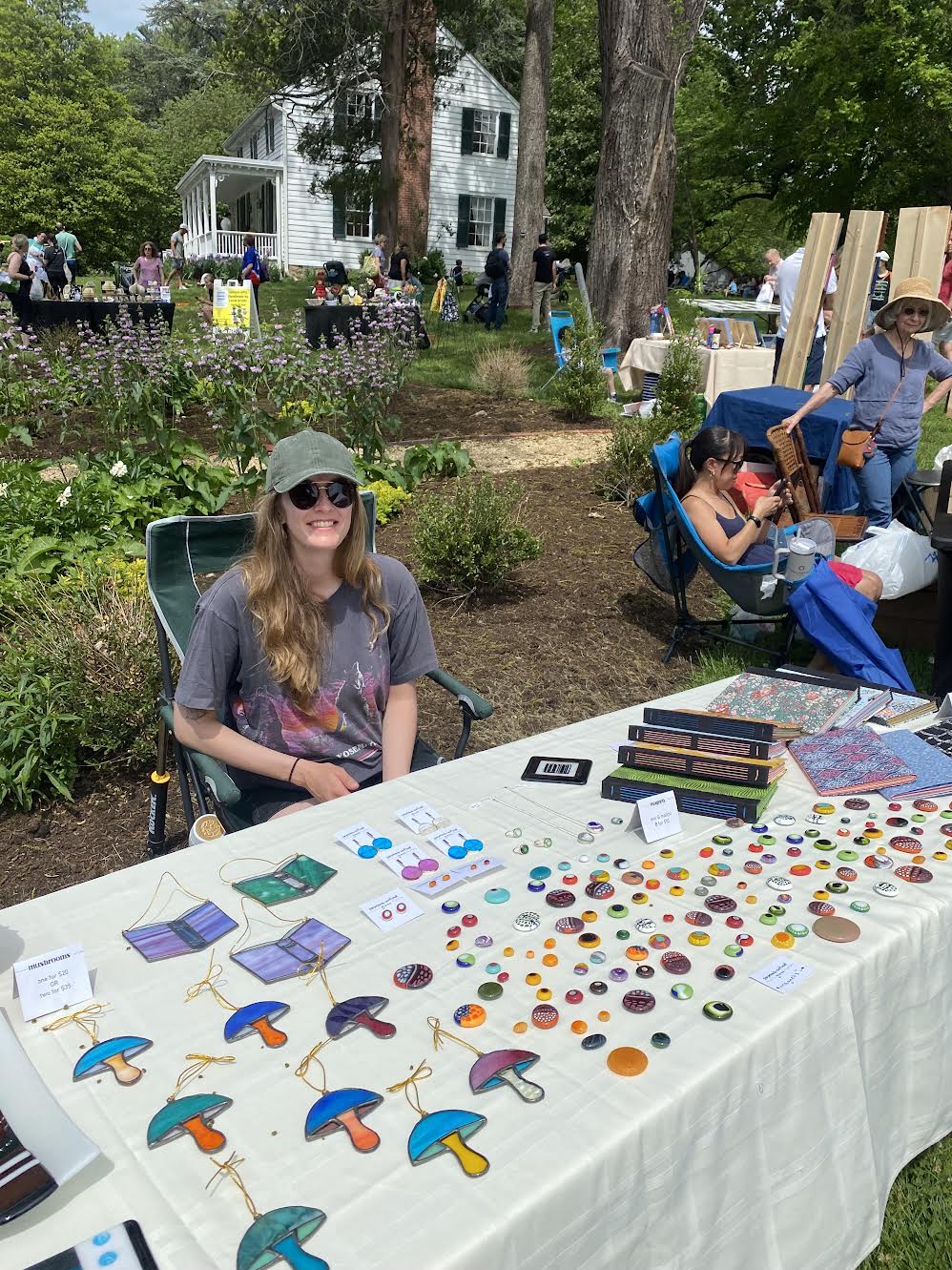 Strolling around the gardens, I chatted with a few of the artists. Decorated glass magnets by artist Noel Welch of Perpetually Confused Glass – and a middle school teacher at The Village School – soon caught my eye.