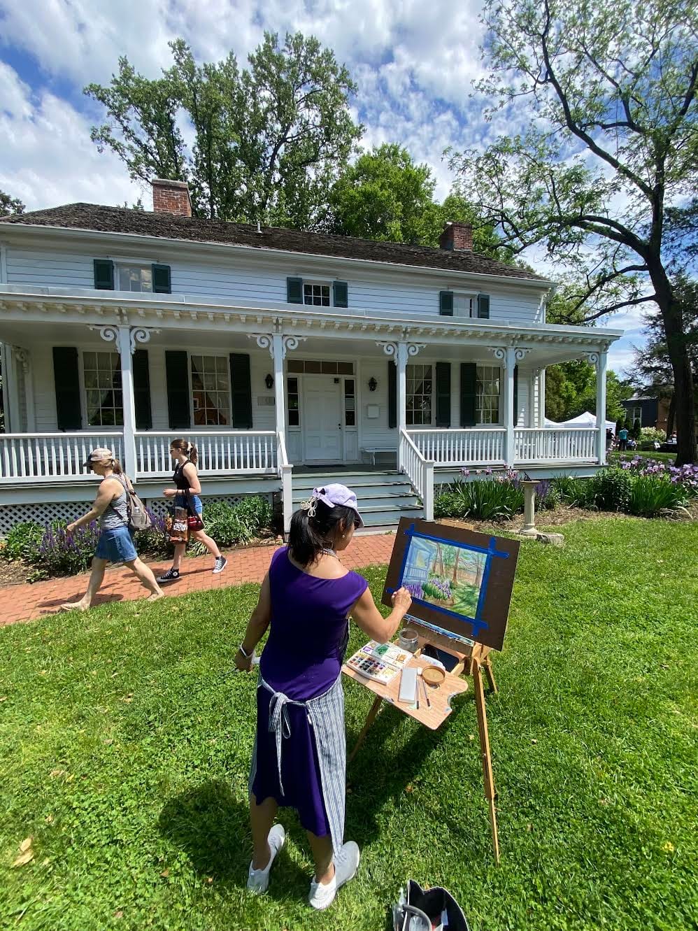 With over 30 local artists displaying their artworks on tables back-dropped by Cherry Hill’s spectacular blooming perennial flower gardens, visitors enjoyed art walk tours, interactive activities for kids and adults, a plein air competition, live musical and dance performances, and simply strolling about in the sunshine, chatting with local creatives and browsing or purchasing their artworks.