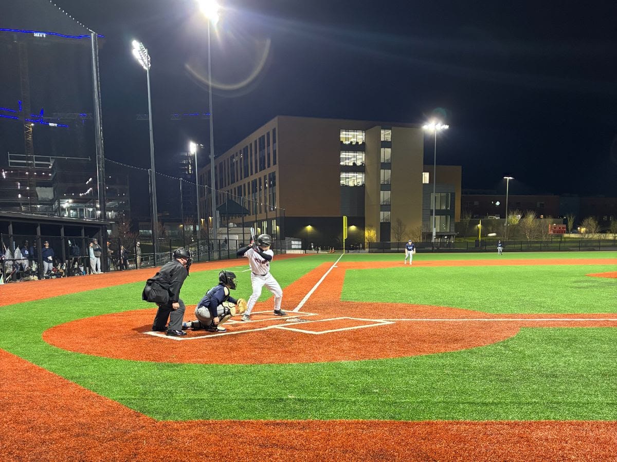 In the inaugural game on Meridian’s new turf baseball diamond, the Mustangs christened their field in style, winning their home opener 10-0 against Millbrook. Junior Luke Greiner hurled a two-hit gem for his second complete game shutout in two starts. Sophomore Chris Capannola scored the first run of the evening on a wild pitch in the first inning on his way to reaching base four times in four plate appearances. Senior Andrew Niemi led the team with two hits, while Greiner and Sophomore Chris Thompson registered two RBIs apiece. Senior Atticus Kim reached base three times, while Senior Jack Mossburg stole two bases, including home plate on a perfectly executed double steal in the bottom of the sixth. Seniors Addison Gross and Ashok Radcliff and Freshman Nate Landers each recorded a hit against the Pioneers.