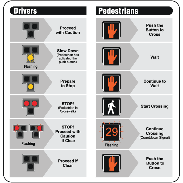 - During the flashing red, pedestrians who have already begun crossing may continue to cross.