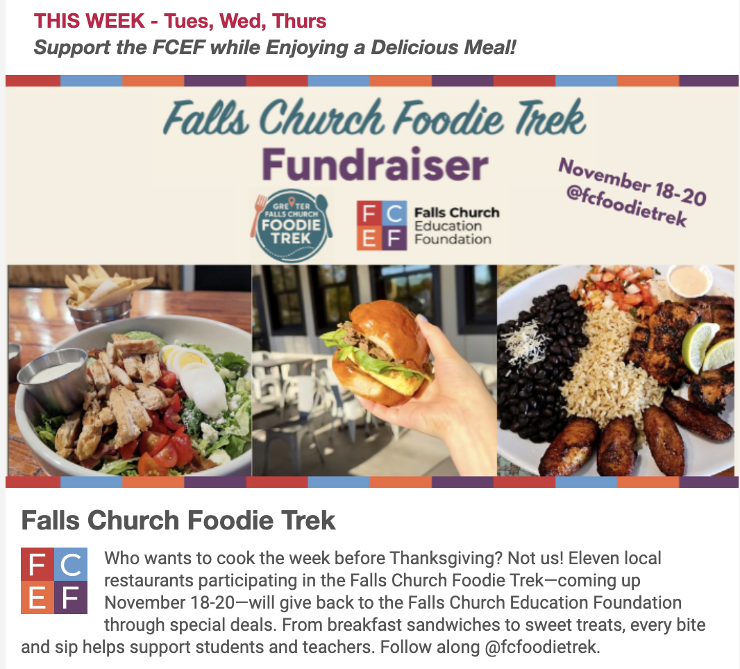 FC Foodie Fundraiser to Support Falls Church Education Foundation, Nov. 18-20