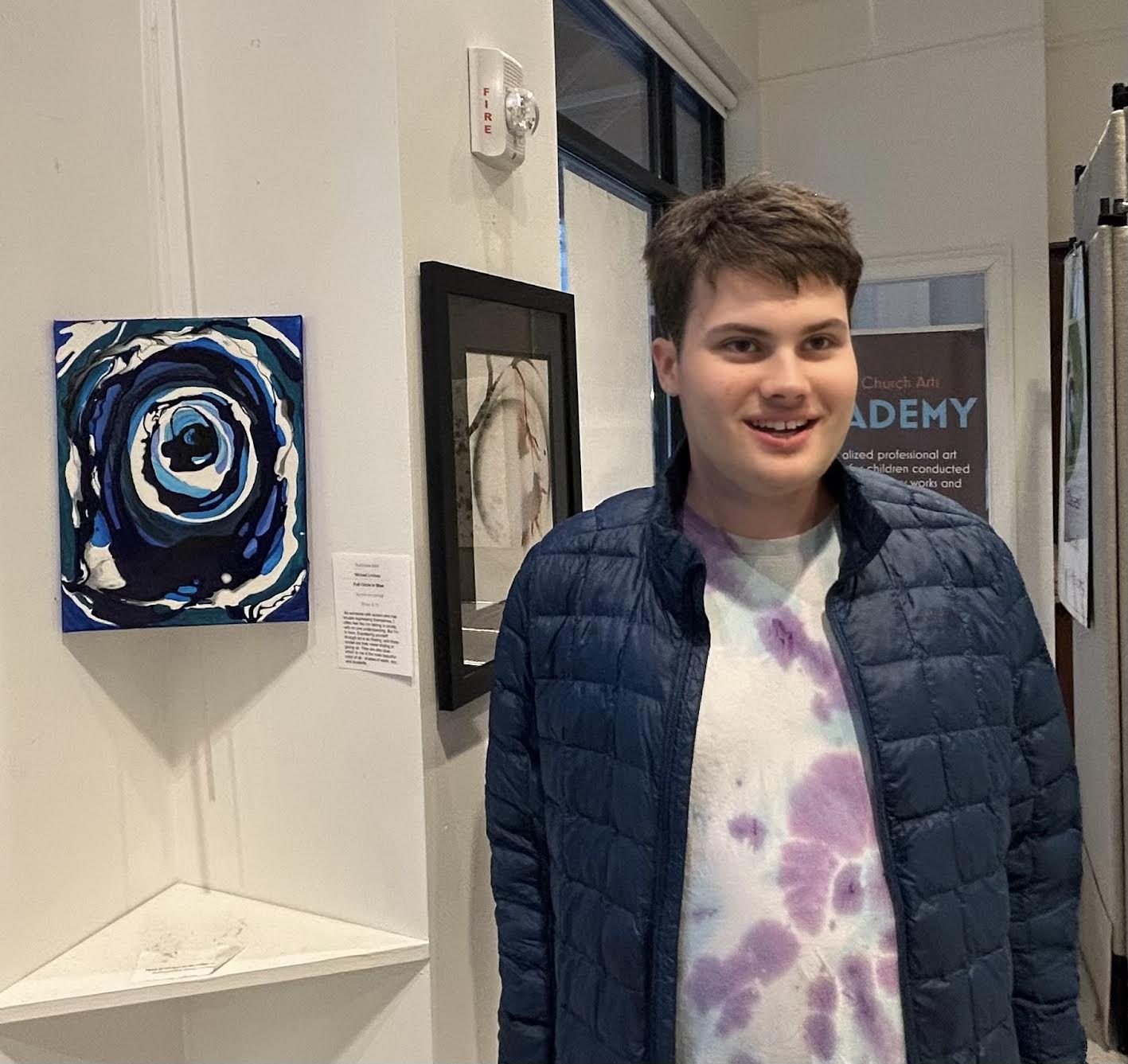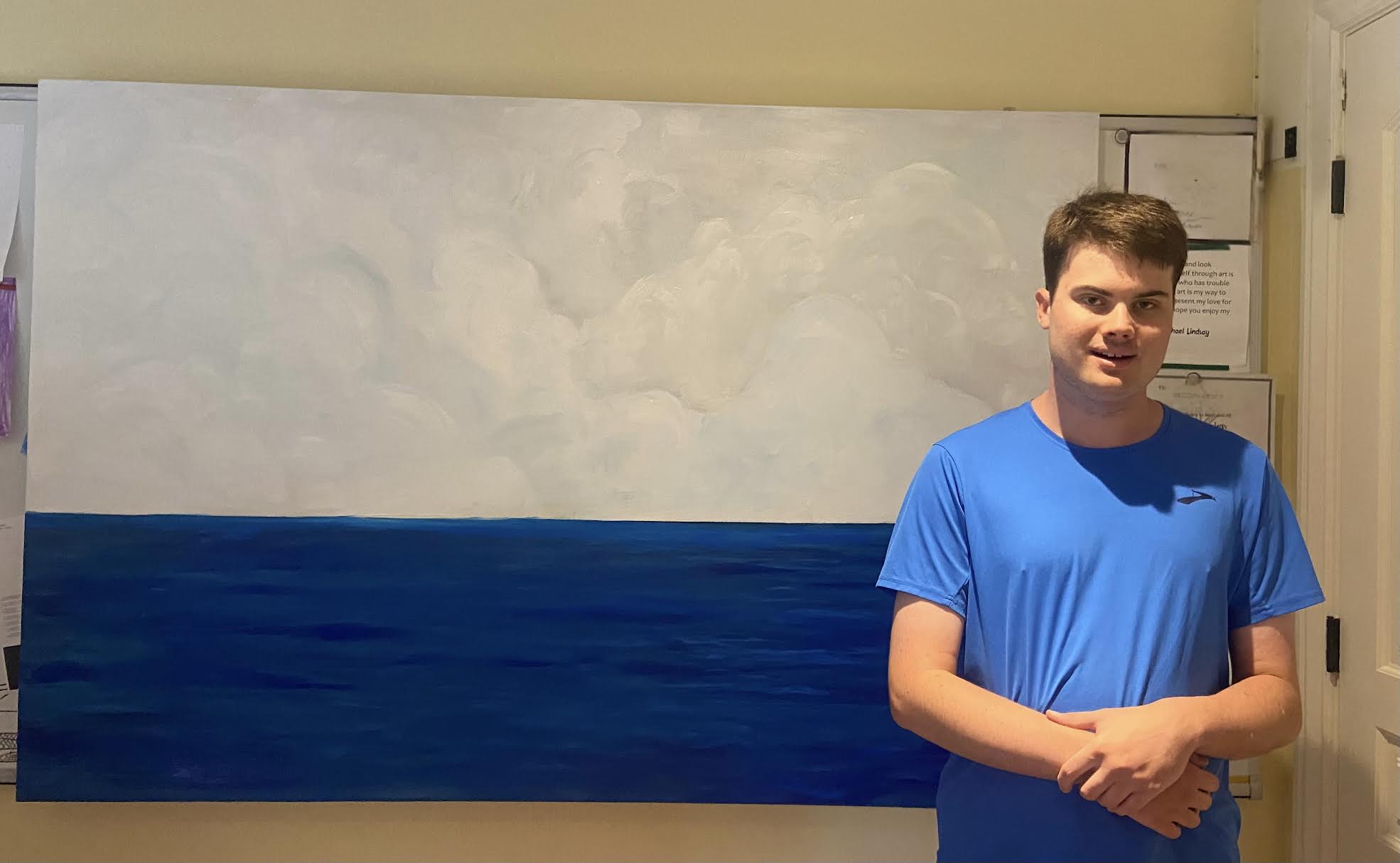 In his artist statement, Michael shares insights about himself. “As someone with autism who has trouble expressing themselves, I often feel like I’m talking in circles, with no one understanding. Expressing yourself through art is so freeing, and these circles are free, never ending or giving up. They are also blue – which to me is the most beautiful color of all – shades of water, sky, and bluebells.”