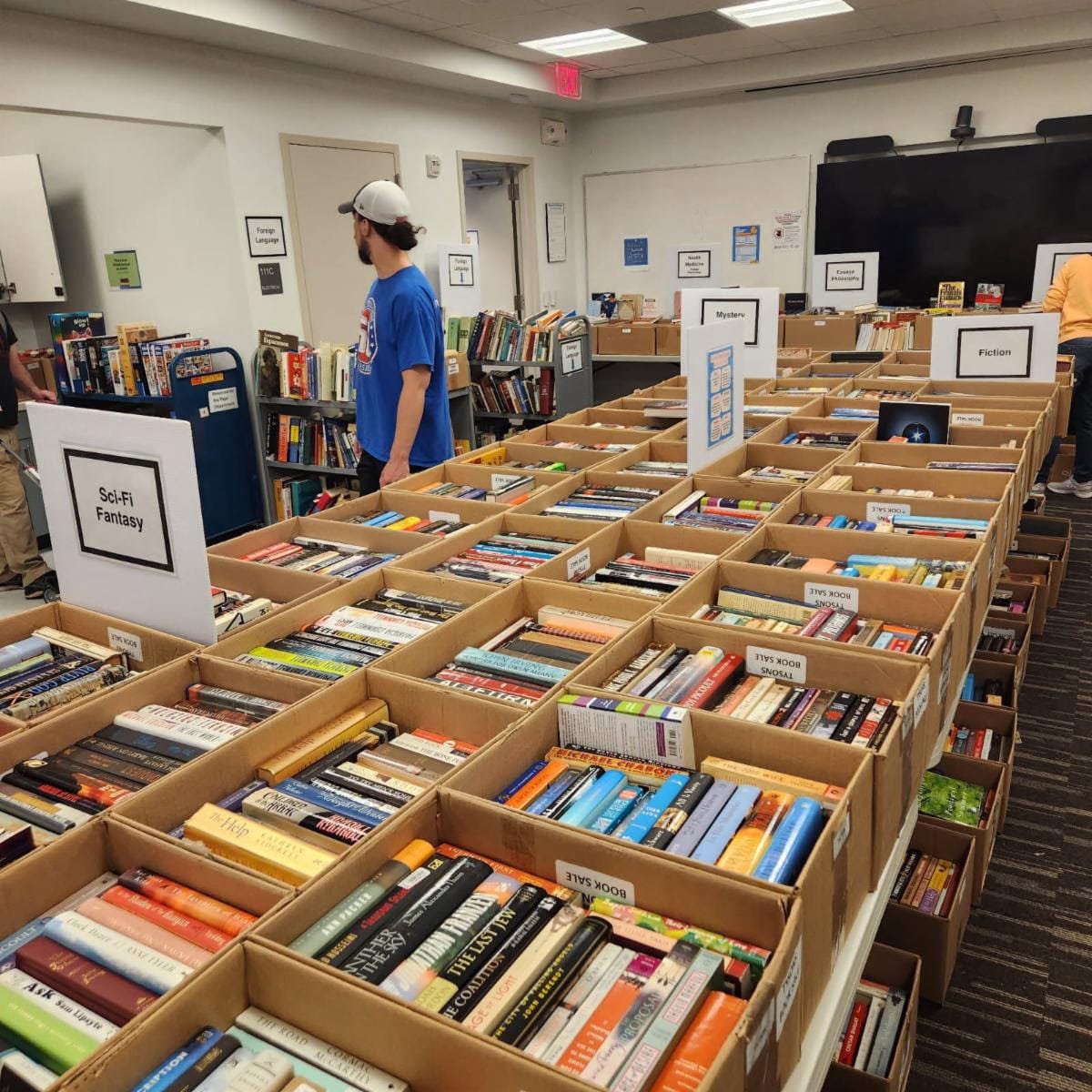 Donations of books and media are appreciated; volunteers are welcome and needed. Sale is 10:00 a.m. to 5:00 p.m.