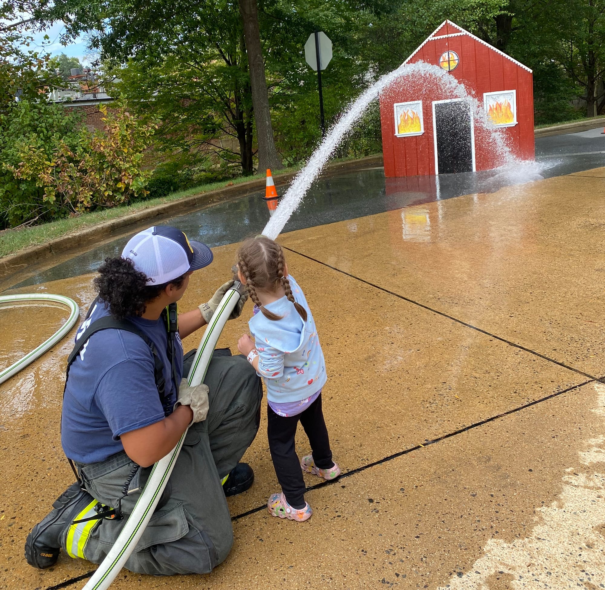 Buzzing with excitement, Fire Station 6 at 6950 Little Falls Rd., Arlington, hosted many enthusiastic families with children popping in to see shiny red firetrucks, ambulances, and sheriffs’ all-terrain vehicles up close, enjoy catered treats and historical displays, shoot the fire hose, and learn all about the station as well as how to help with home fire prevention.