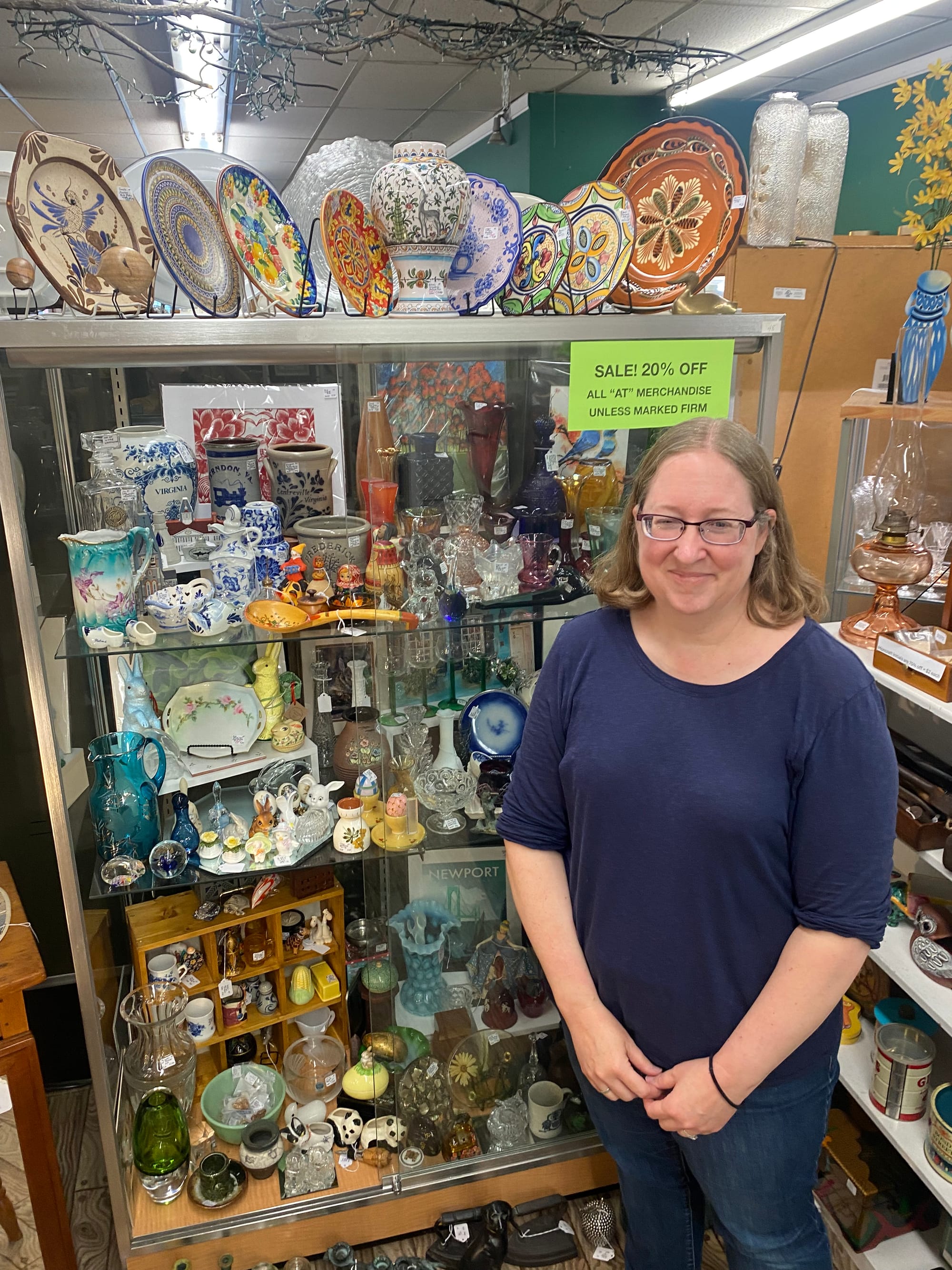 Laurie Trainer, a Vienna, Va. resident, former regulatory lawyer, and one of the store’s co-op antiques dealers working the floor chatted with us as well. “I work here two times a week, because we all take turns,” she said.