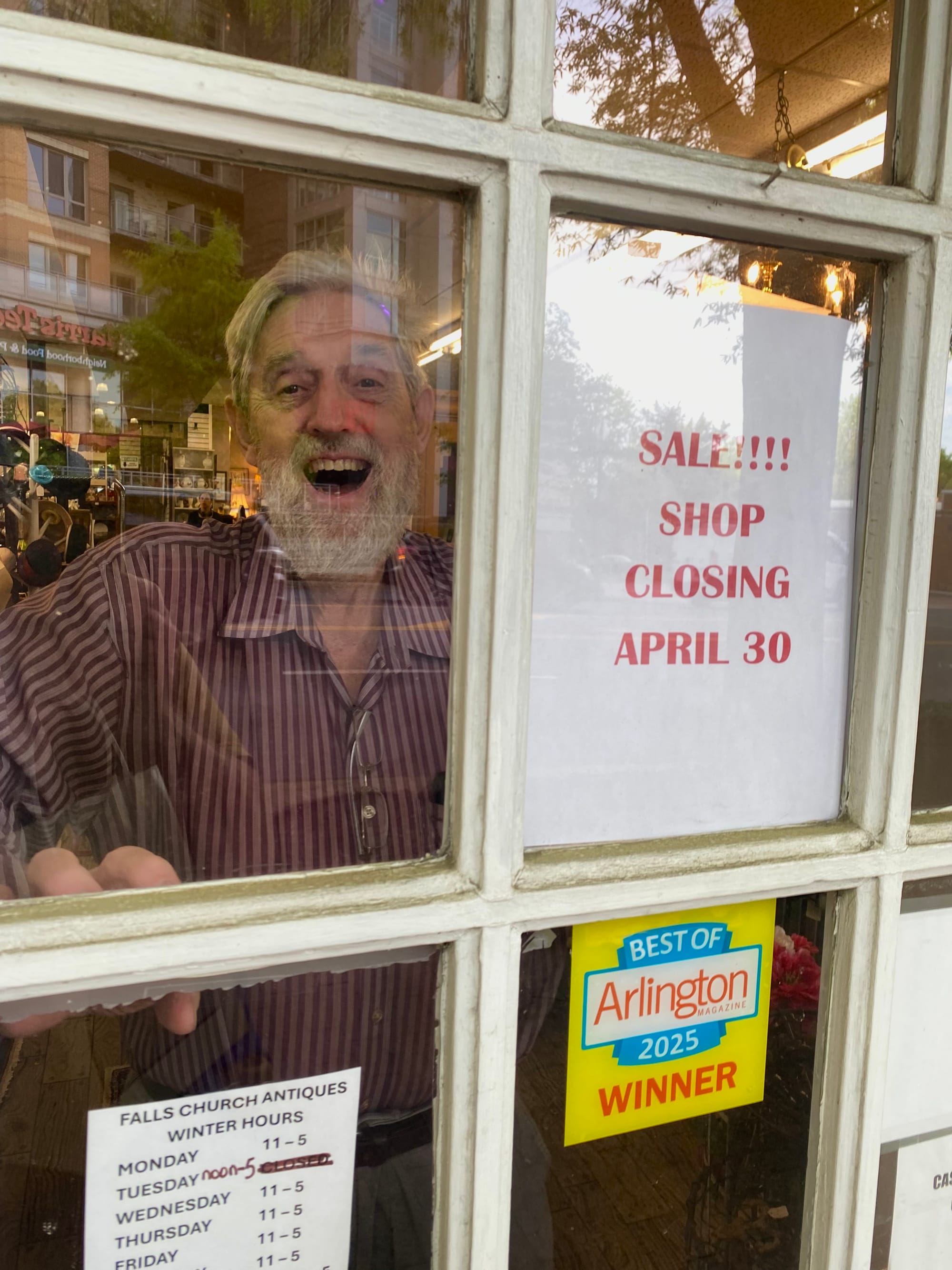 “We’re closing the doors and locking up April 30,” Quinn said. “And it’s been wonderful actually closing because we have had more compliments than I could ever have wished for.... And a lot of people say, ‘What’s happening? All of Falls Church is going!’ And I say, ‘Well, not all of them have gone yet.’” [Laughs].