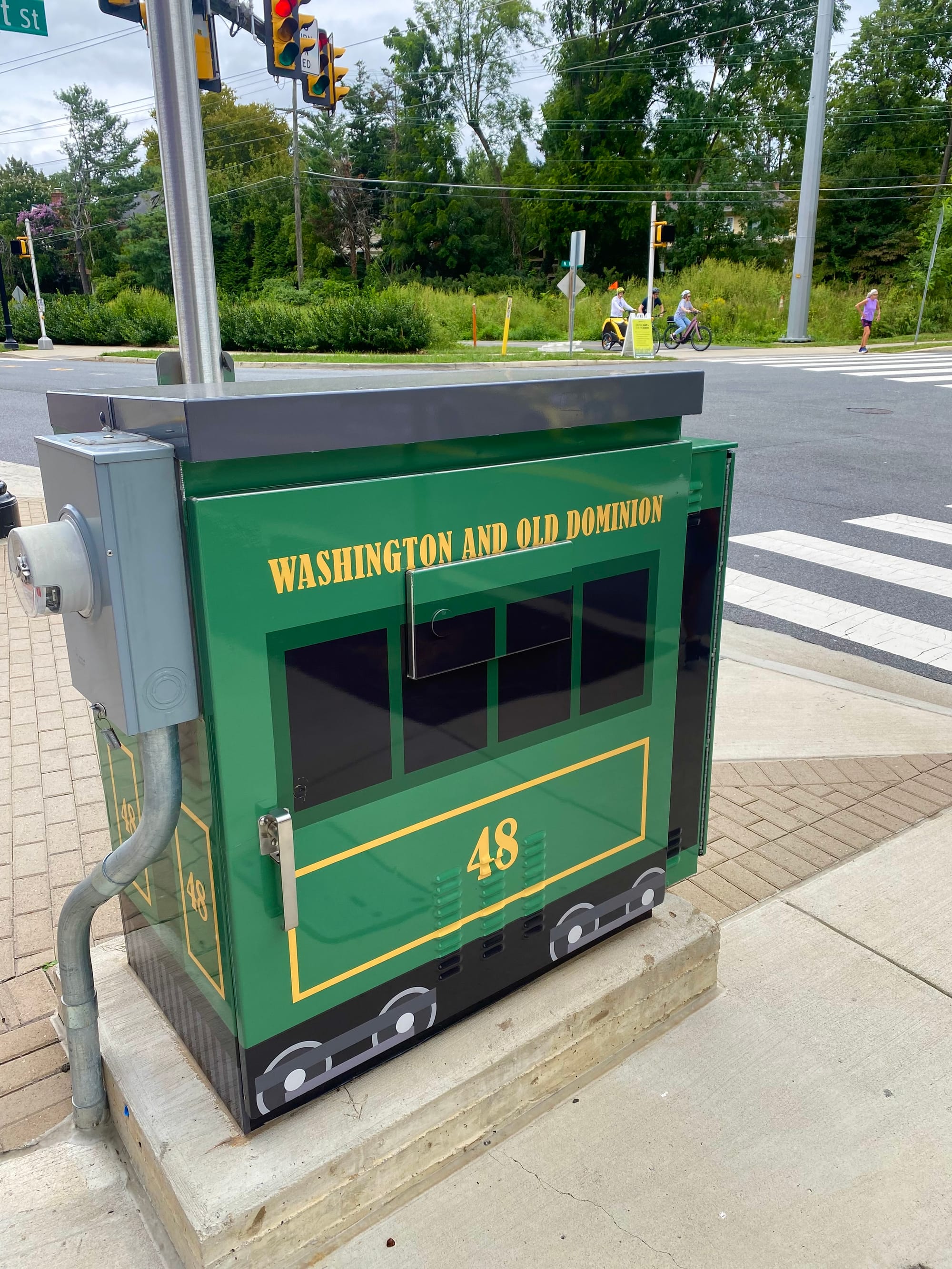 Across the street at Founders Row, the City recently unveiled an electric utility box painted to commemorate the historic Washington and Old Dominion Railroad upon which the W&OD Trail was initially blazed over its rail bed.
