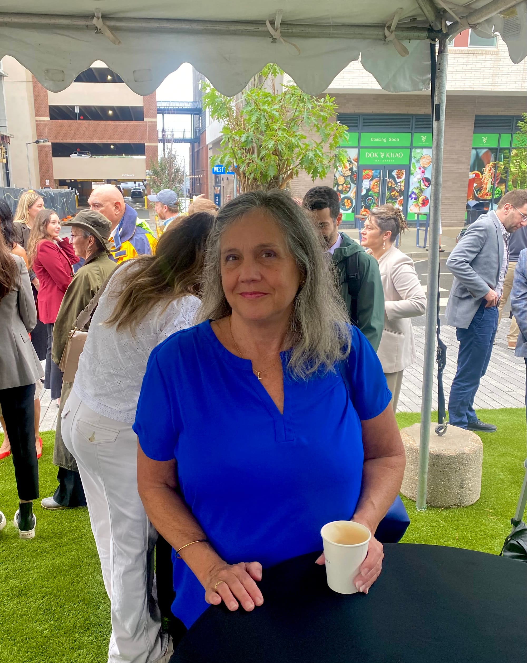 Vice Mayor of Falls Church, Debbie Hiscott gave us some insight into the School Board’s early thinking as the West Falls Project germinated. “I am super-excited,” she began. “This is the culmination of more than 20 years of work that I was a humble participant of 20 years ago, talking about facilities in Falls Church City Public Schools and planning for the high school. And then I was involved with about four other people in running the PAC to support the bond referendum to have the high school built. So it passed, obviously, and we spent $120 million to build that new high school. And part of the reason I ran for City Council was to ensure that this development was created and able to support that $120 million bond because that was the original deal. So, it’s incredibly exciting to be here and have this ribbon-cutting today and see all this vibrancy and to see how successful it has been as it was paid for by that $120 million bond.”