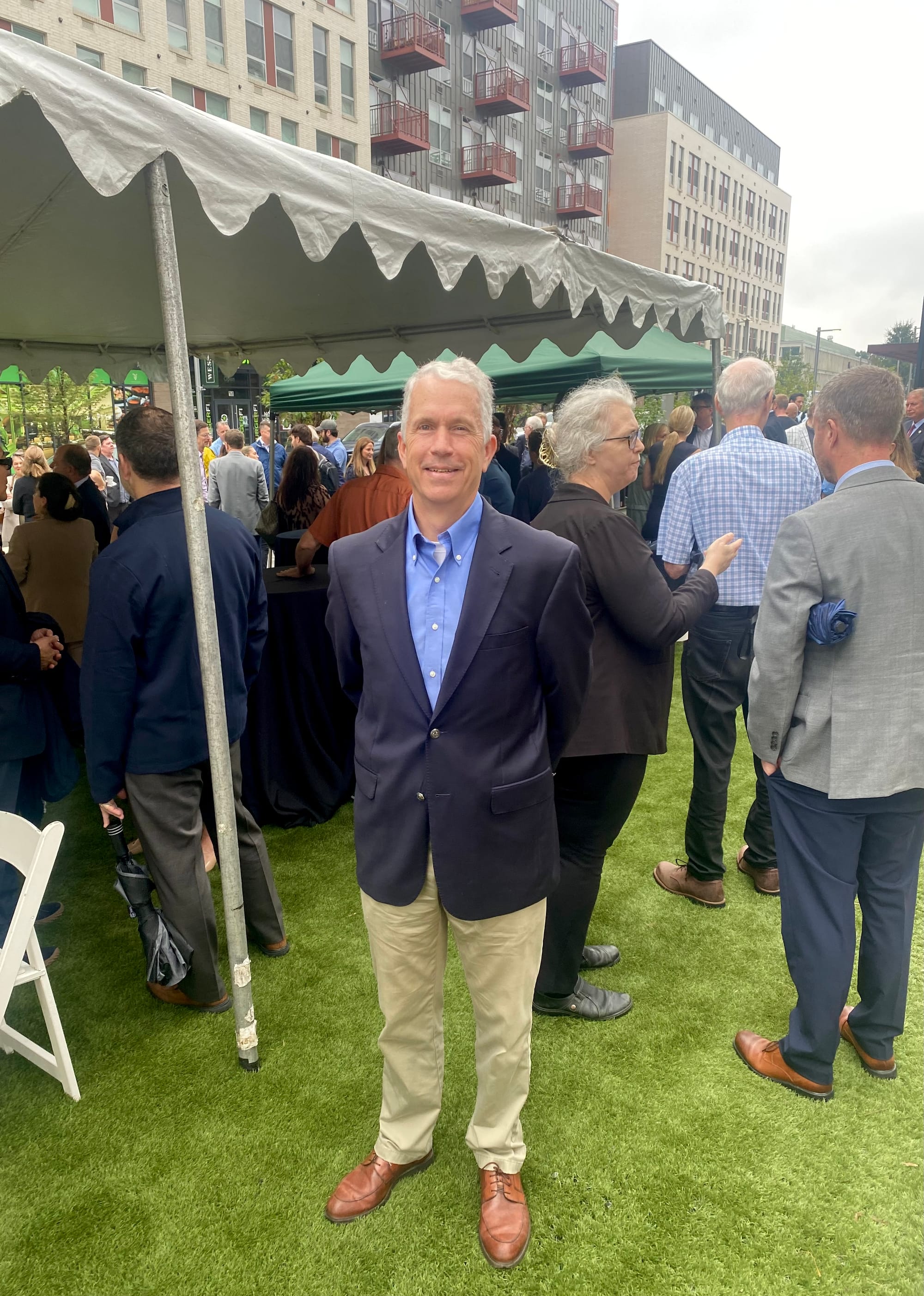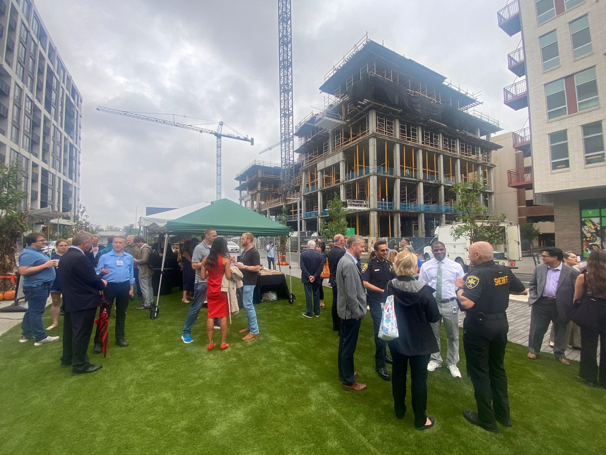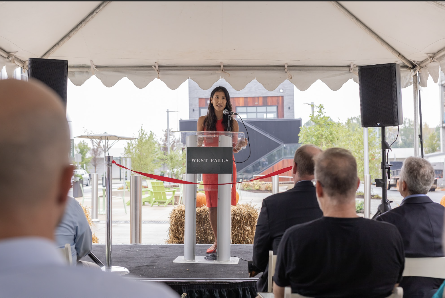 Beneath an expansive tent on the Commons of the West Falls Development, Thursday, Sept. 25, the “Grand Opening” of West Falls, a nearly 10-acre transit-oriented mixed-use neighborhood, marked the largest and most complex development in the City’s history.
