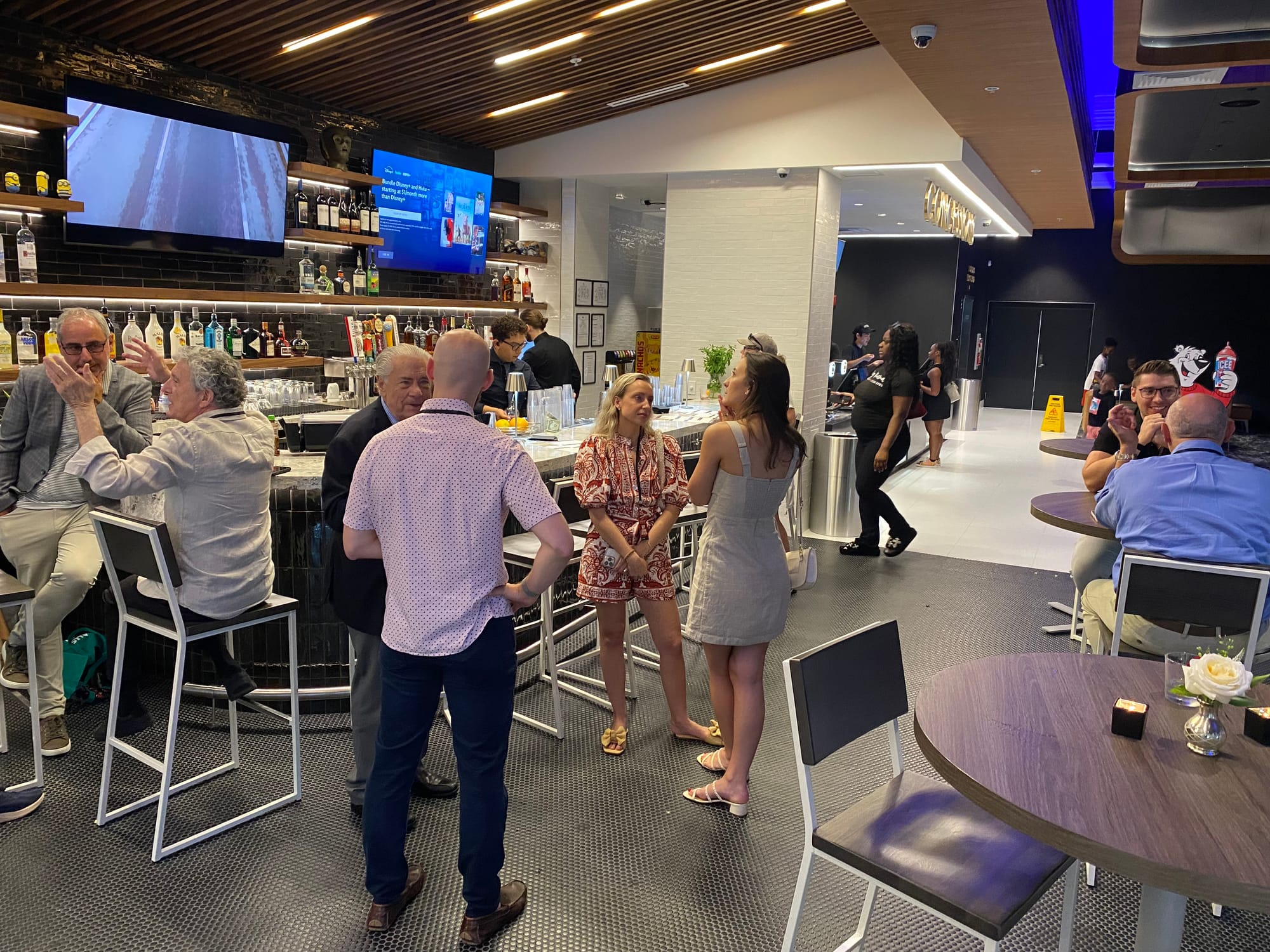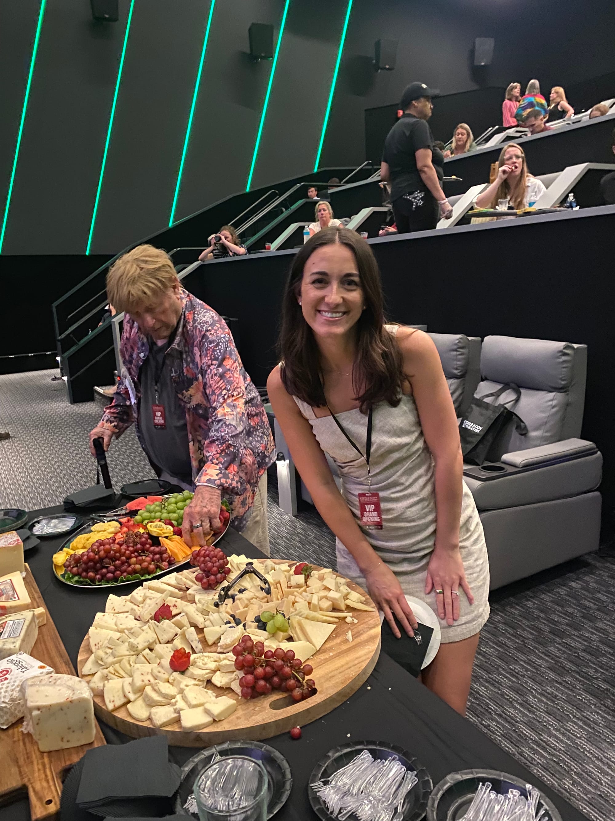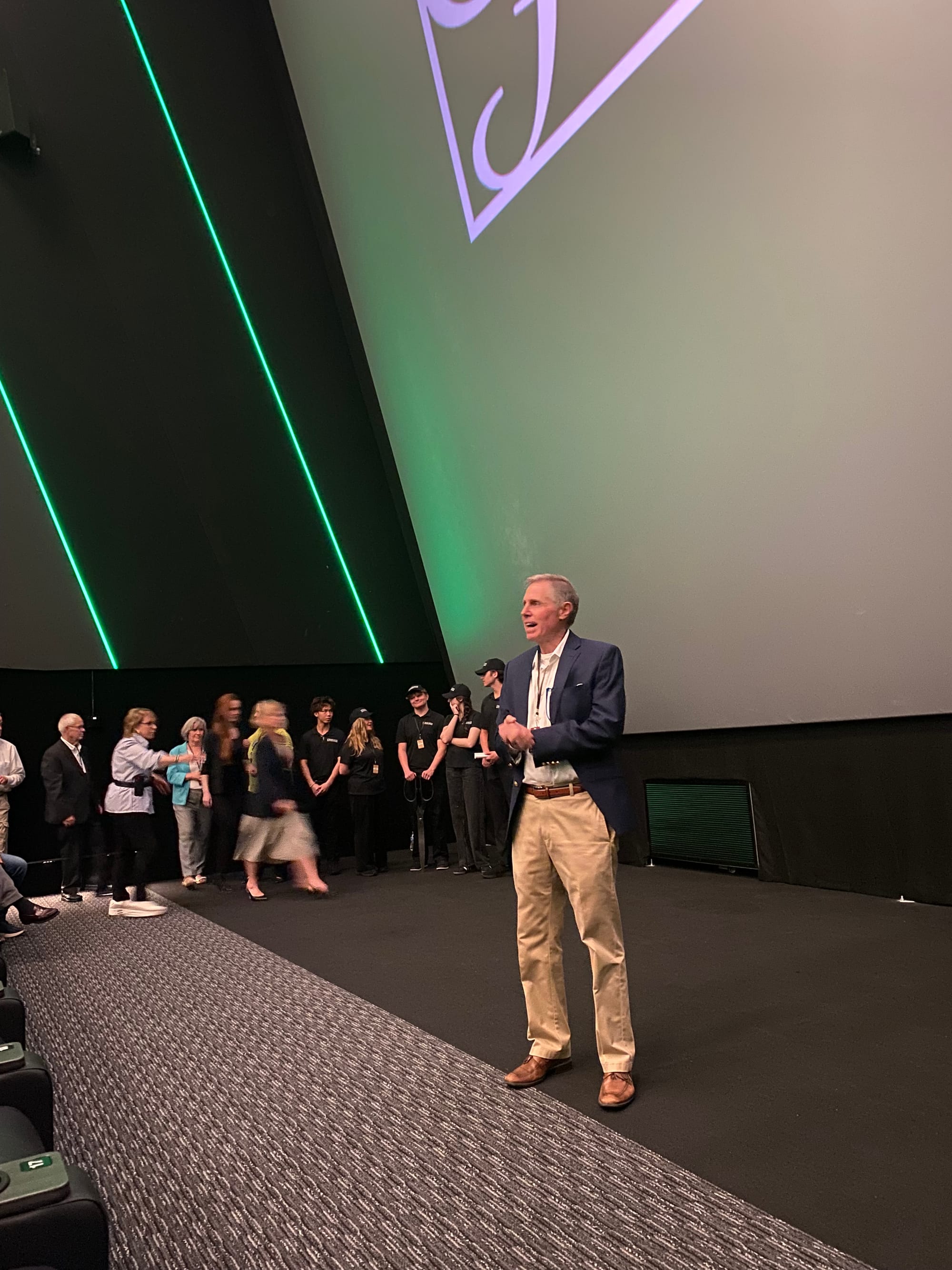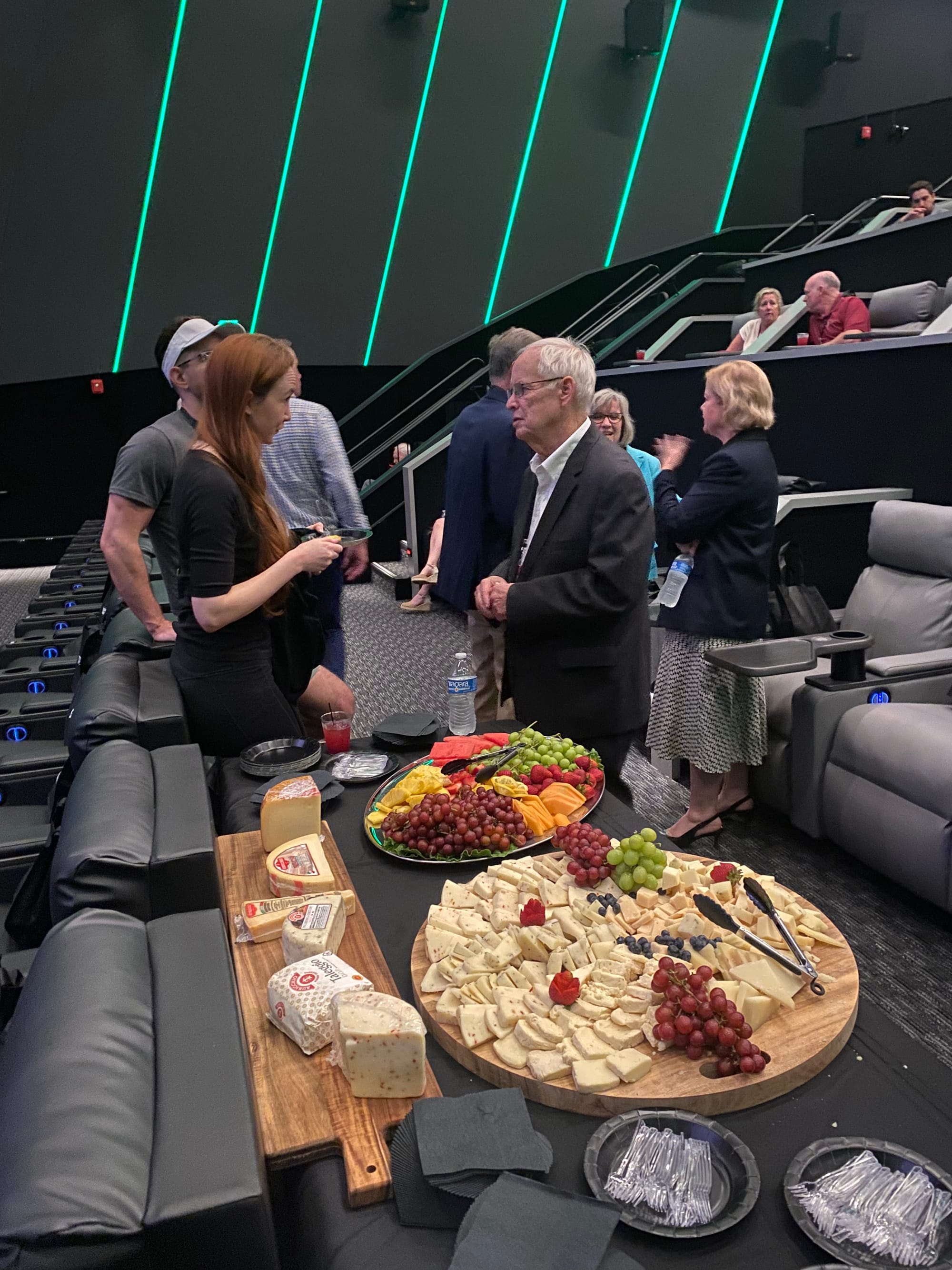 The long-anticipated Grand Opening of the 7-screen, 600-seat, newly-built movie complex nestled within the apartment buildings at 110 Founders Ave. took place indoors, not only to show off the theaters’ high-tech bells and whistles, but owing to the threat of thunderstorms outside. Following the event, VIP attendees were treated to a roaring screening of the new Brad Pitt blockbuster film F1.