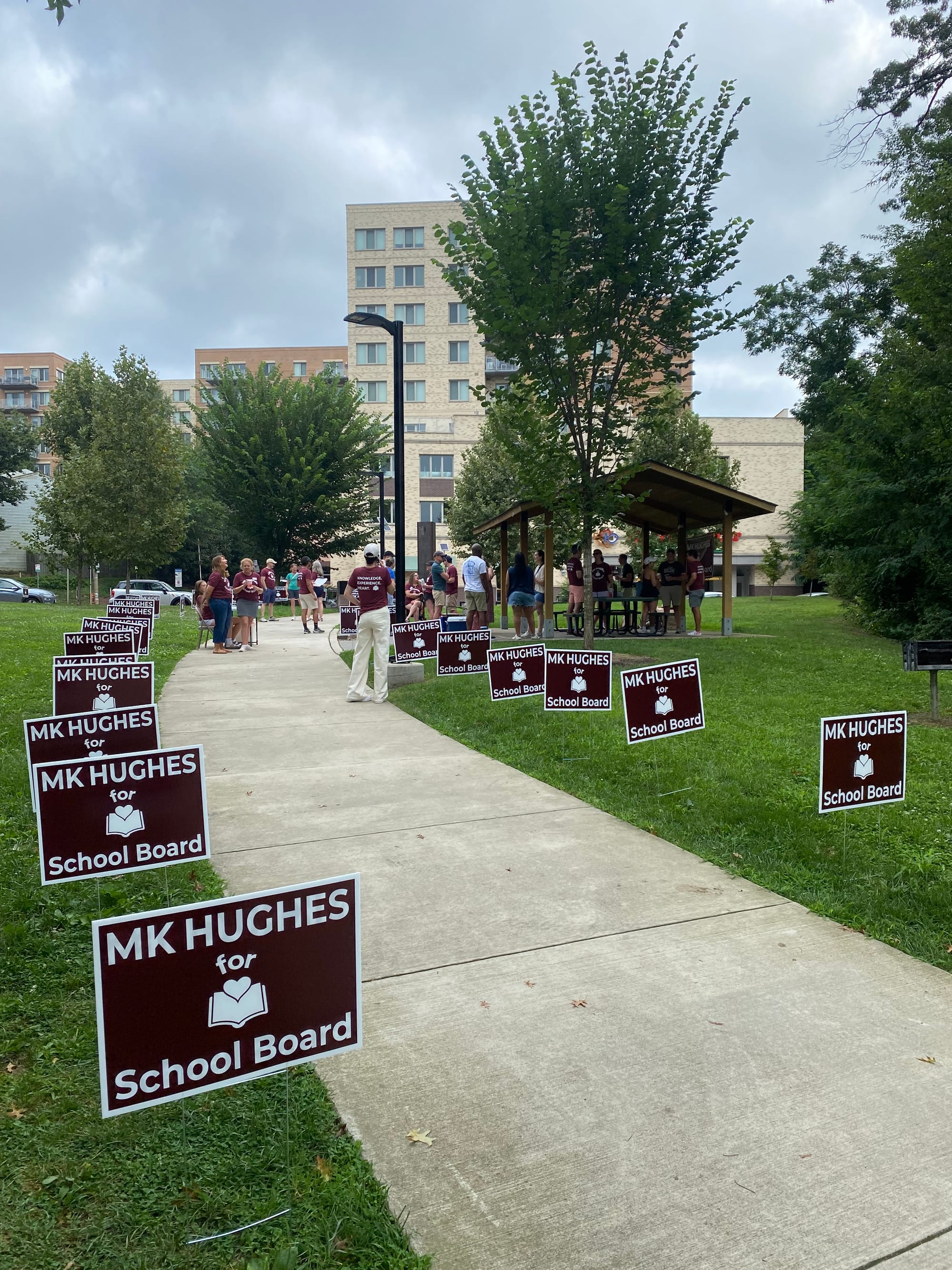 With dozens of parents, neighbors, students and kids sporting MK campaign t-shirts emphasizing Hughes’s “knowledge, experience and heart,” and seemingly eager to pass out flyers and knock on doors, the kick-off appeared enthusiastic, well-organized, and full of appreciative supporters.