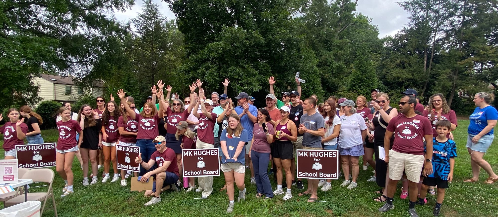 On a muggy, sunny Saturday morning at Big Chimneys Park, Aug. 16, MaryKate “MK” Hughes – former National Award-winning 5th Grade Teacher at Oak Street Elementary and now American University Teaching Coach – kicked off her official campaign to run for the Falls Church City School Board, in the Nov. 4 election.