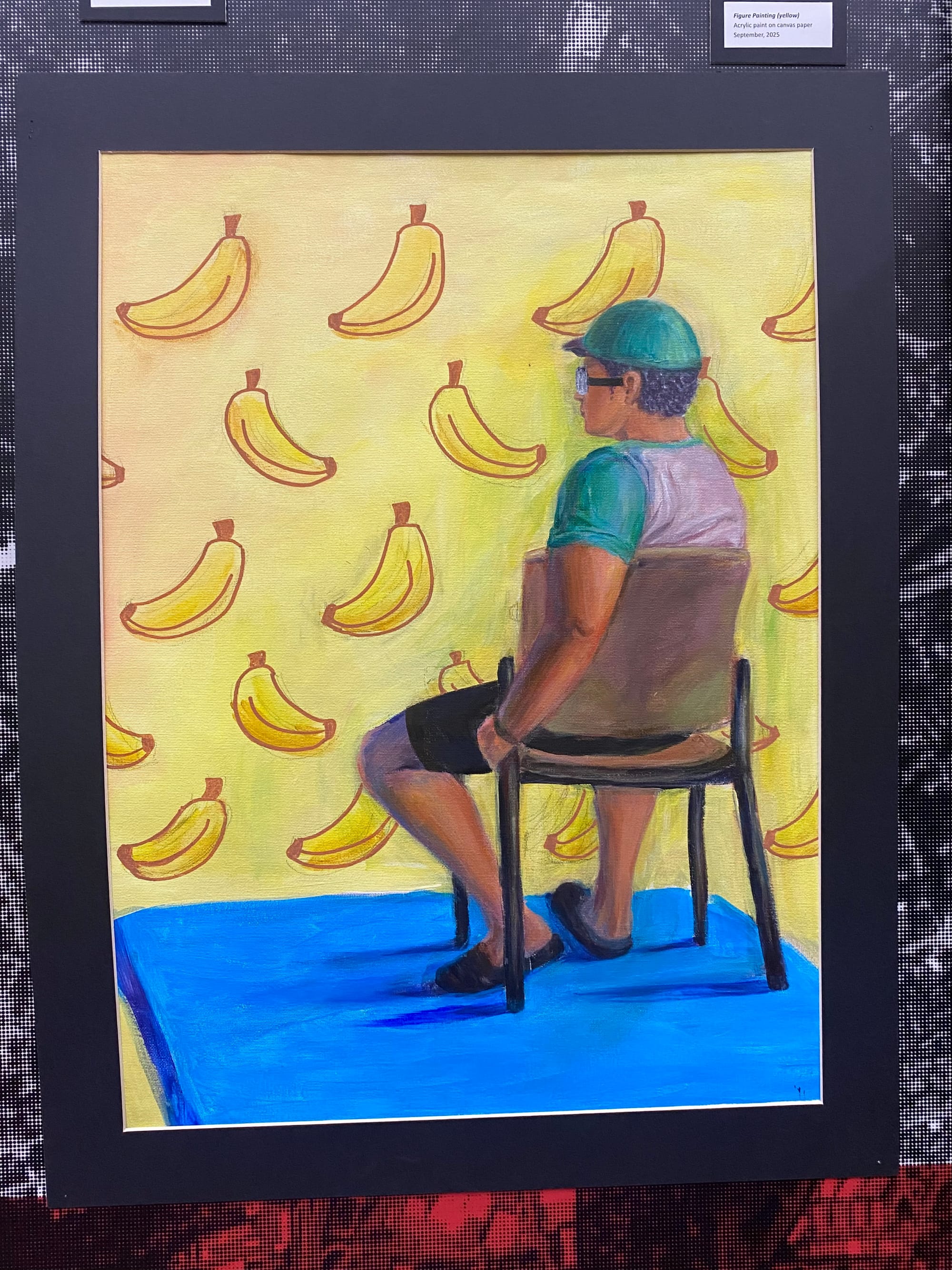 Across the way, senior Adi Rose Henderson confirmed Pike’s information that Henderson had recently sold her first piece of art.... to the high school’s IB Diploma Coordinator. “He said his kids like bananas, so he wanted to buy the banana one…. It’s actually called ‘Finger Painting (yellow),’ but it’s like a Minion theme because there are bananas and he, [the painting’s main figure], is wearing goggles.”