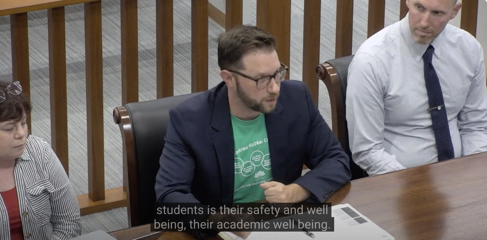 And the student turnout was inspiring. “The School Board had a great little protocol. We had a hundred-ish students and they split them into a few groups. And asked some questions for the kids…. They put the questions up on the screen and they had a QR code up for anyone who didn’t attend – which I enjoyed because of the irony and I think they enjoyed the irony as well – so kids got to [engage]. And nothing makes me happier as a former Journalism teacher, having the students engage [their] voices directly with their civic leaders, right? So, it was awesome and I applaud our School Board for doing that and coming out and talking directly to the people whom the policy is going to most affect.”