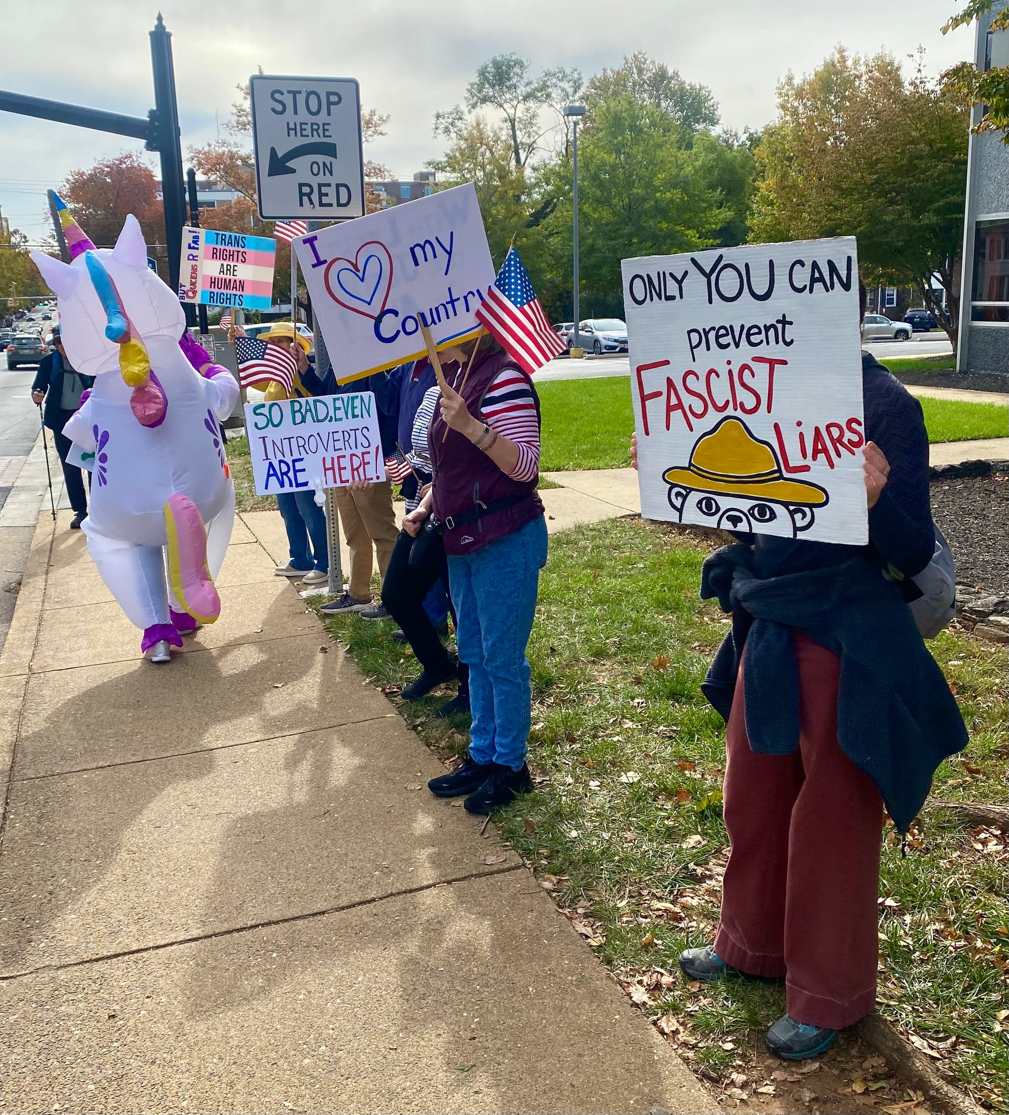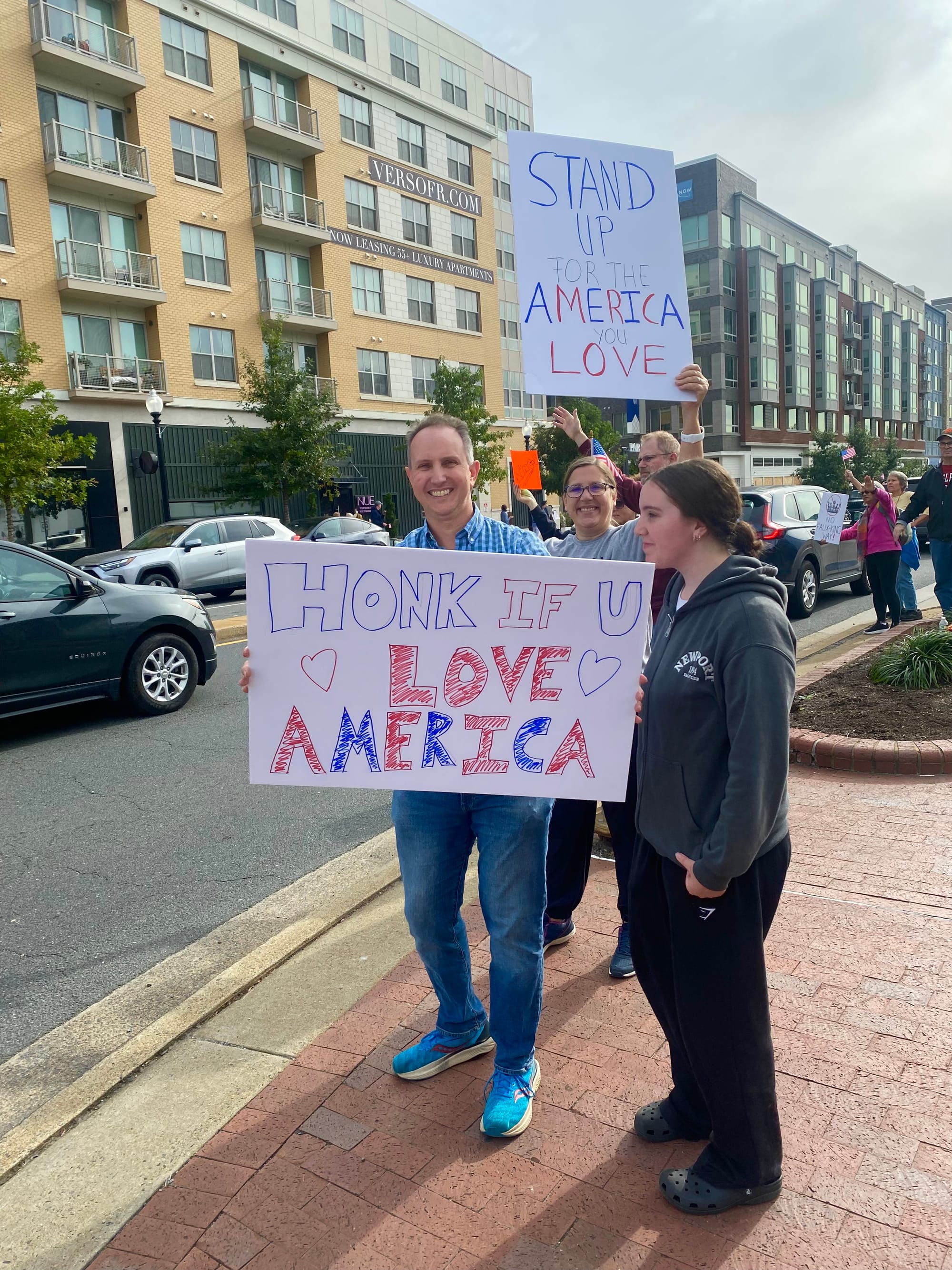 Two Falls Church political organizations, Democracy Falls Church (DFC) and Falls Church Indivisible (FCI) sponsored the day’s rally in The Little City, dividing their responsibilities between the east and west sides of Route 29, FCI to the west and DFC to the east.