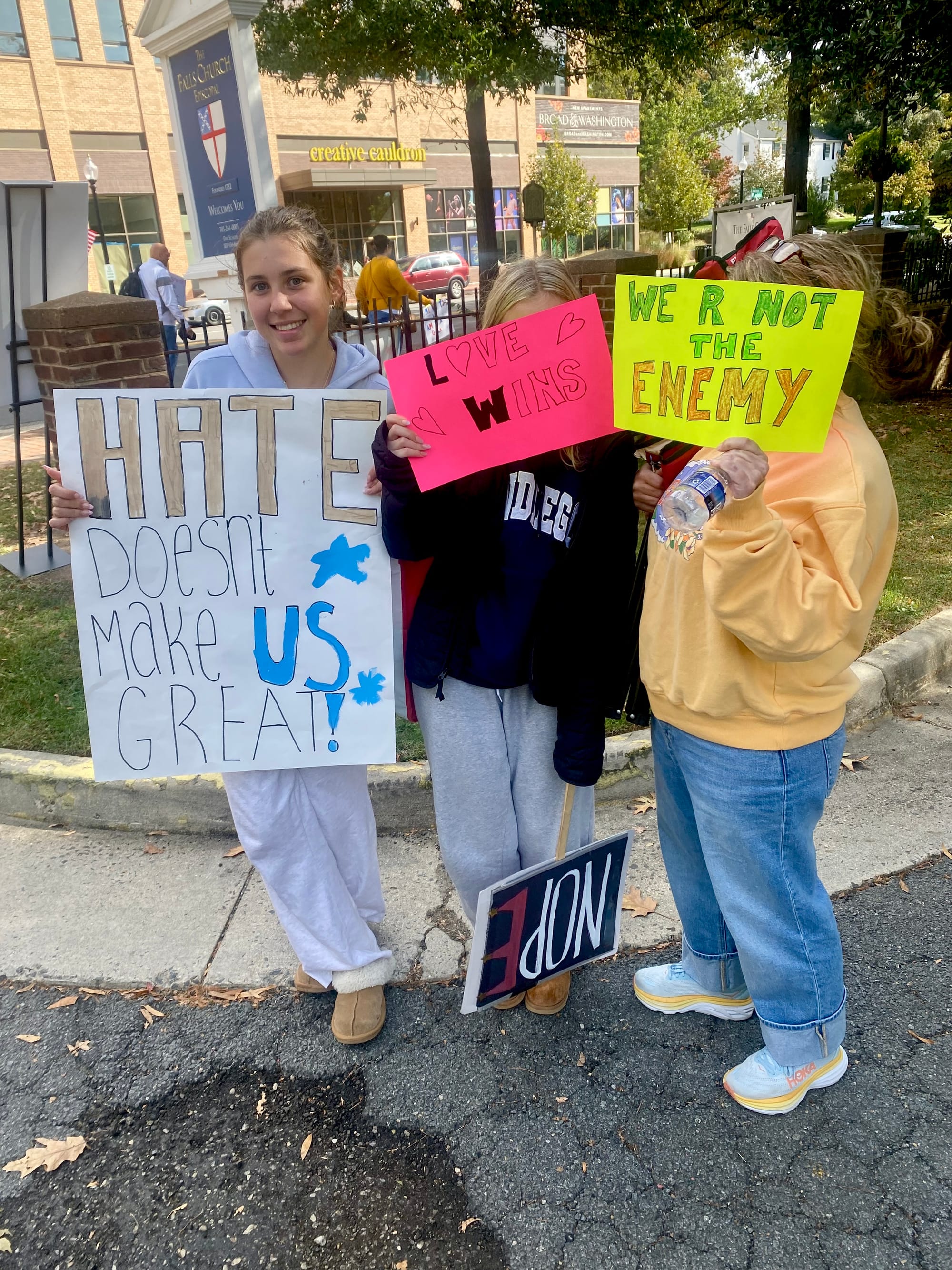 Didi’s sign reads, “We are not the enemy.” "Why did you write that?," we asked. “So, we were called the ‘enemy’ by the White House. The White House said we are ‘the enemy’ and ‘terrorists’ and we are not, especially not here at the Falls Church Episcopal,” Didi said.