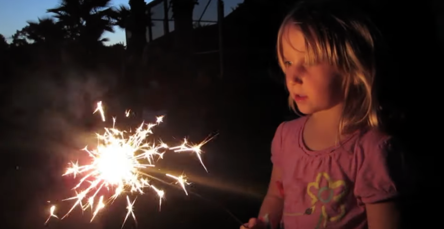 So why the fascination? I LOVED playing with sparklers and so did all of my friends. Our parents bought boxes and boxes of the things so that we could play with them as a group. After we’d lit a few and become jaded with mundane activities like writing our names in the sky, we’d become more creative. I remember lighting a sparkler at both ends, but was disappointed to learn that it only burned faster — nothing special there. Sometimes we’d put one in each hand and run around in circles. Other times, like chain smokers, we’d light a new one from the burning-down old one. To show bravery, we’d put the sparks close to our arms, but they didn’t hurt. Eventually there were even colored sparklers, and giant ones which could be staked in the ground. To keep us safe, Mother always had a bucket of water to douse our burned wires before we lit another.