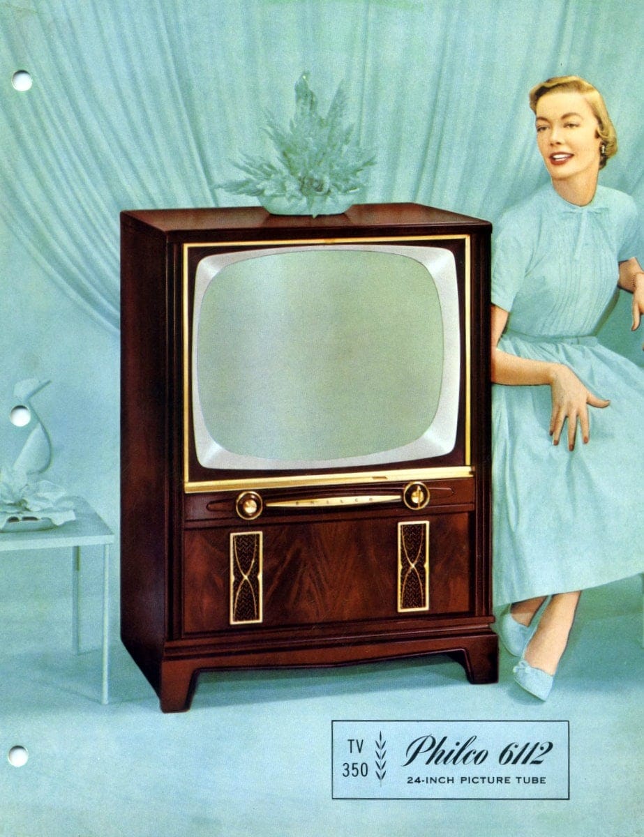 Fast forward to my return from school one fall afternoon when our new Philco TV, costing $219, arrived. I could hardly contain myself as the deliveryman wheeled in the monster console, almost as big as our fridge. Since my dad had thoughtfully hired a tall antennae tower installed in our side yard, we didn’t need hardware on the roof or rabbit ears on top of the set. So the delivery man wired it to the tower, plugged in the set, turned it on, and Captain Video appeared, as he would every weekday at 4 p.m.
