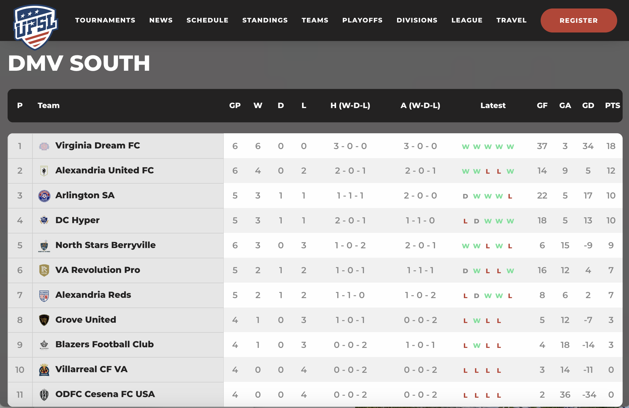 According to a team press release, The Dream "continued their undefeated 2024 UPSL Fall Season with an epic 14-0 victory this past Saturday to remain alone atop of the UPSL DMV South Table." The [Old Dominion Football Club] ODFC Cesena FC took their worst loss of the season against The Dream on Sept. 21 at Lake Fairfax Park Field.