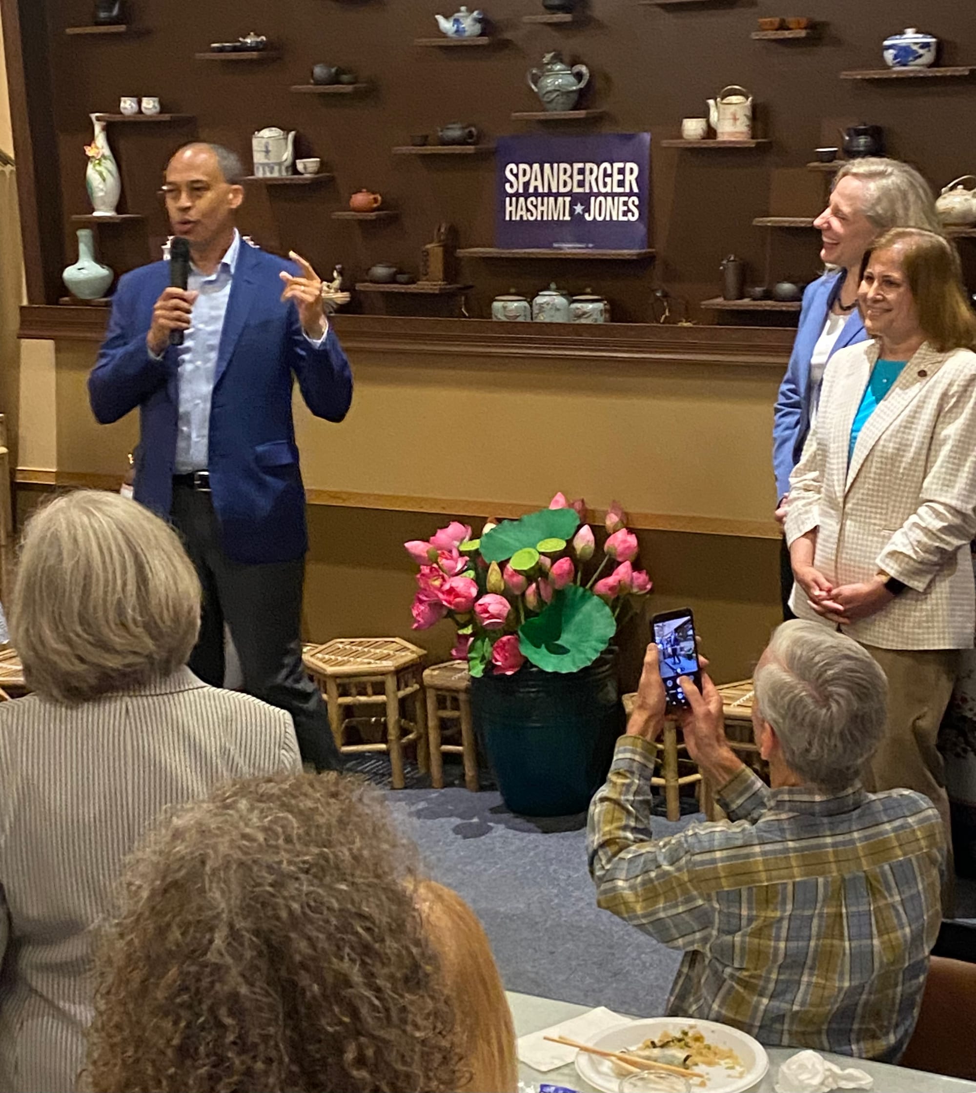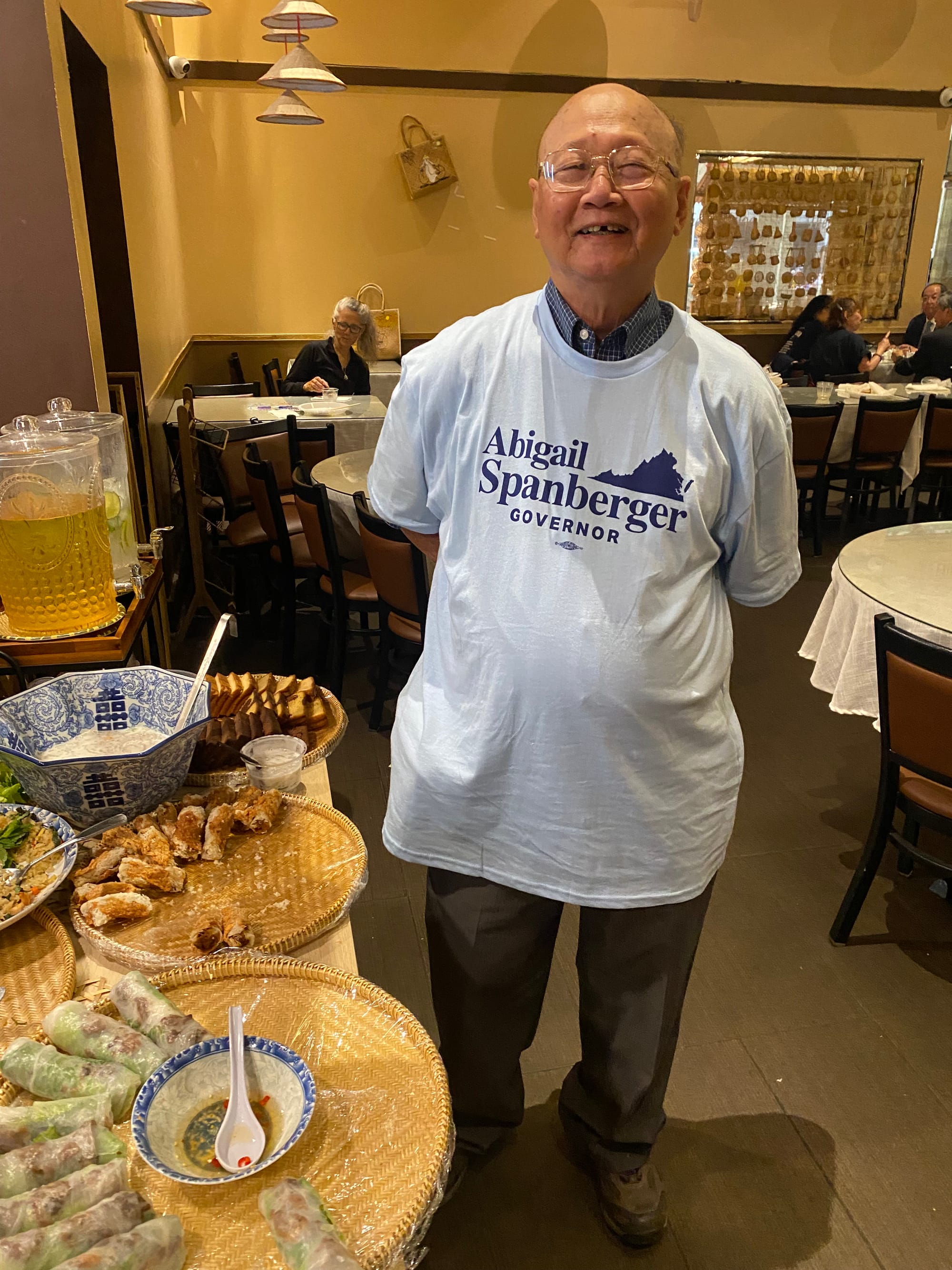 Returning to Eden Center as a metaphor both for the benefits of diversity and as a symbol of the American dream, Spanberger then concluded, “In this space, each store or restaurant or business or boba tea shop is unique and different. And I’m going to just harken back to the boba tea place where we just went, where it looks like an airplane [inside], and the only thing you can think when you walk in is, ‘This was someone’s dream.’ And now it is real. And when you look at what it means to see communities come together in places that were clearly once just a dream, we need a Governor, and we need a ticket, and we need state legislators who are focused on making sure the foundation is strong and that we are standing up for communities and for Virginians every time there is chaos coming out of Washington.”