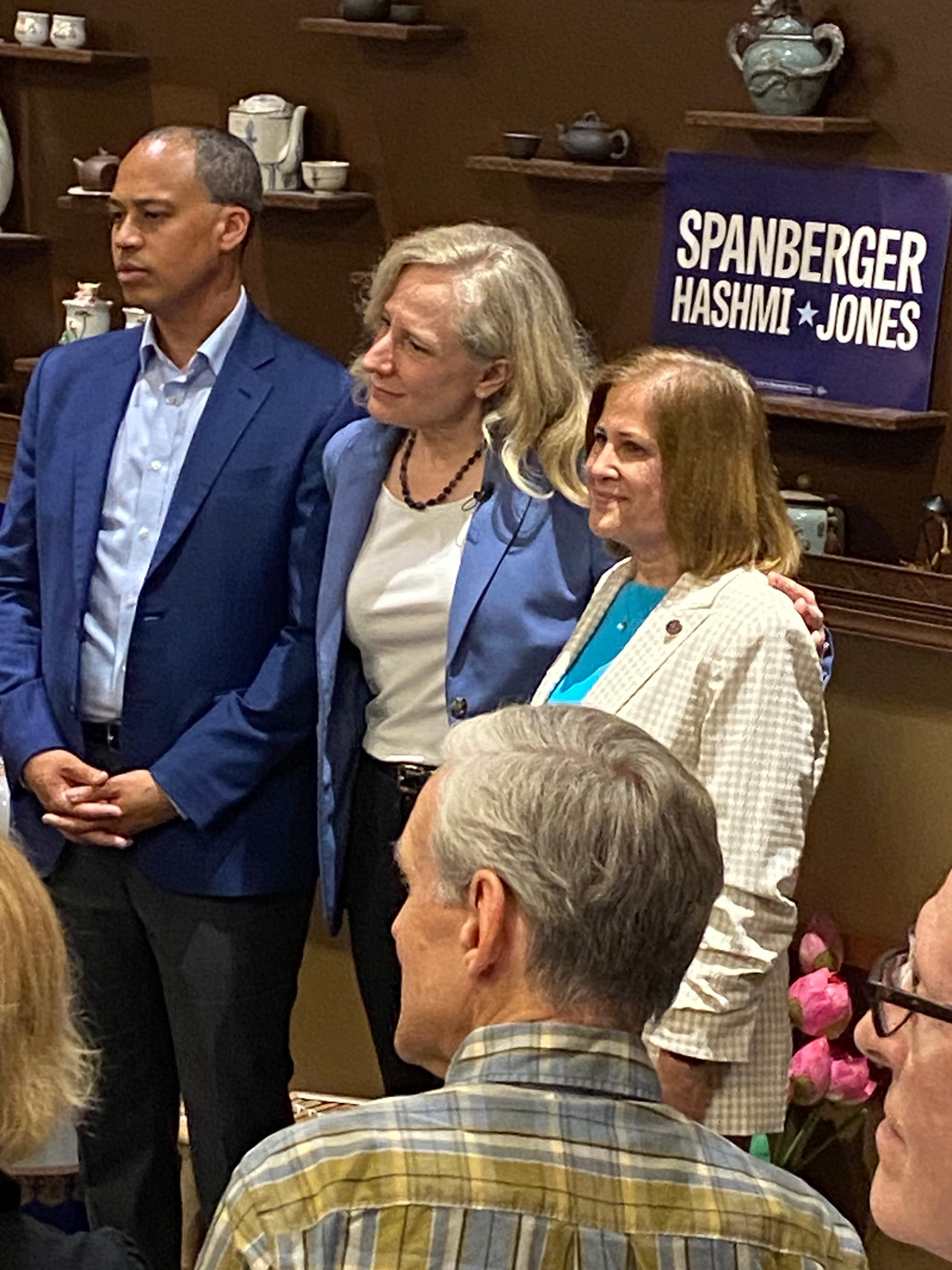 The spectators had come to see Abigail Spanberger, Ghazala Hashmi, and Jay Jones – the slate of Democratic nominees running for, respectively, Virginia Governor, Lieutenant Governor, and Attorney General, in the Nov. 4 statewide elections.