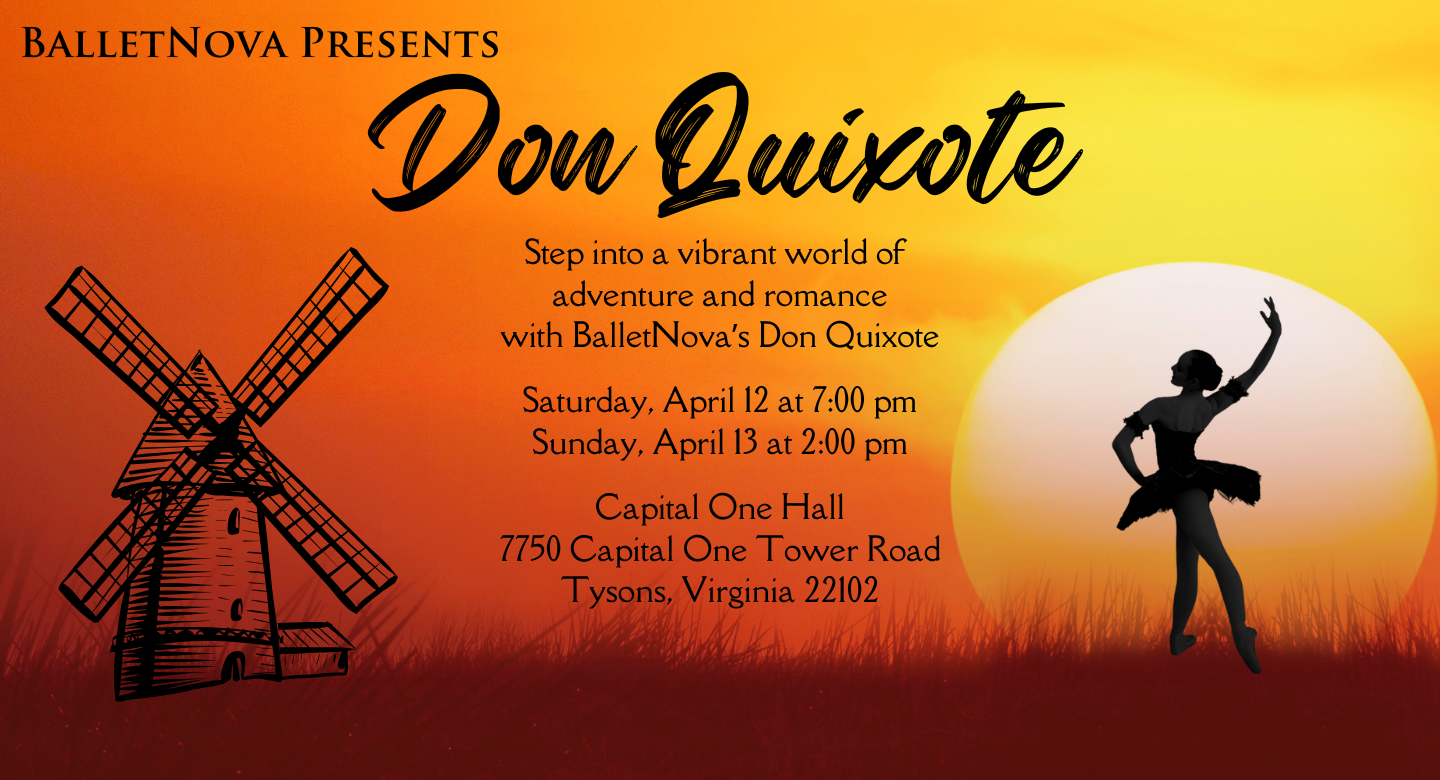 Featuring stunning choreography, exquisite costumes, and a spirited score, Don Quixote brings to life the themes of love, imagination, and the pursuit of ideals. Whether you're a ballet enthusiast or a newcomer to the art form, this production of passion, humor and breathtaking dance promises to leave you uplifted and inspired. Join us for an unforgettable journey!’