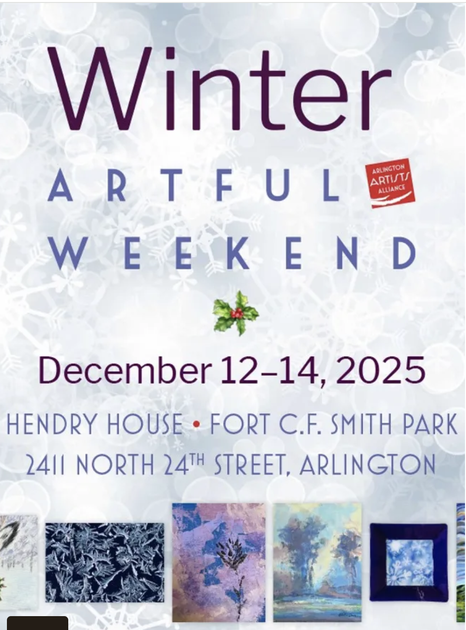 Don’t miss Winter Artful Weekend at Fort C.F. Smith Park in its 23rd year! This art event will showcase 40 artists from the Arlington Artists Alliance and is perfect for holiday shopping. This event is free and open to the public. Find original works for every budget and occasion. [Event sponsorship generously provided by Sotheby's.] Can't attend? Support the Alliance and donate today!