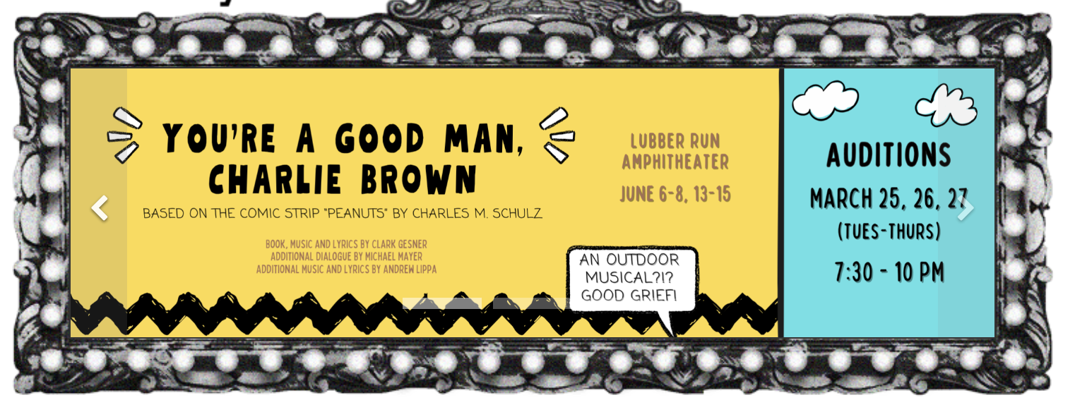 Are your kids aspiring thesbians? Encourage them to audition for "You're a Good Man, Charlie Brown," at Lubber Run Ampitheater, 300 N. Park Dr., Arlington, March 25, 26, and 27, 7:30 - 10:00 p.m.